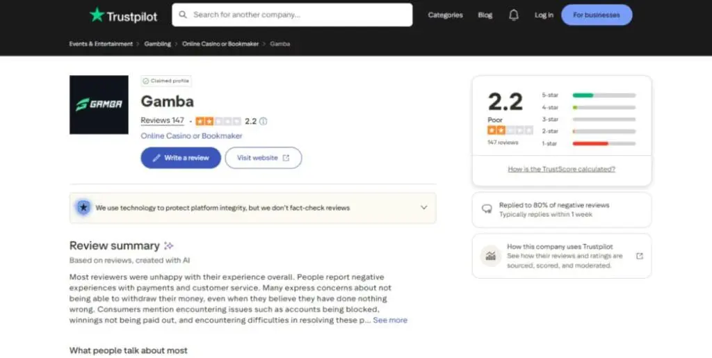 Right, so that’s what Gamba crypto casino offers players, but what are people saying about it online? Well, at the time of writing this Gamba review, there were very few ratings available.