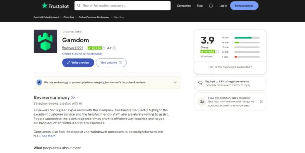 Before I share my personal conclusion, let’s take a minute to look at what other people are saying about Gamdom. Here are some ratings from popular casino review platforms: