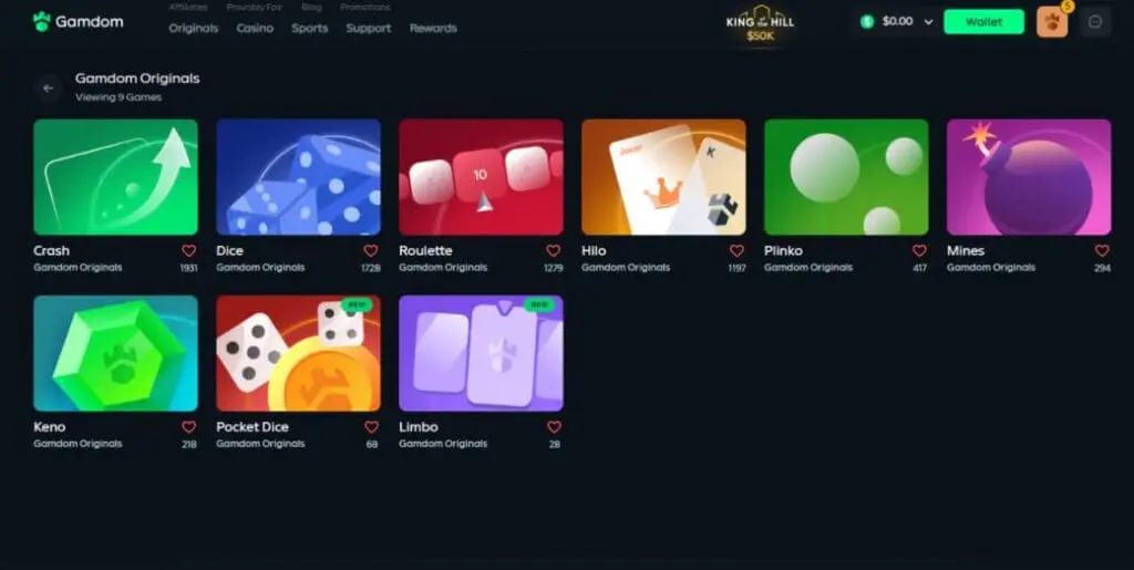Aesthetically, there’s very little to distinguish Gamdom from other mainstream crypto casinos like BC.Game and Stake.com. Don’t get me wrong, the site is well-designed and looks slick, but oh how I wish a casino operator would have the guts to get a bit creative.