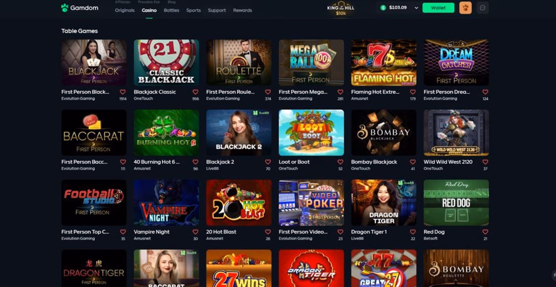 If you’re not in the mood for dealing with humans (I have many days like that), Gamdom has more than 50 RNG (Random Number Generator) based table games. This includes several first person games from Evolution, including blackjack, roulette, baccarat, and video poker.