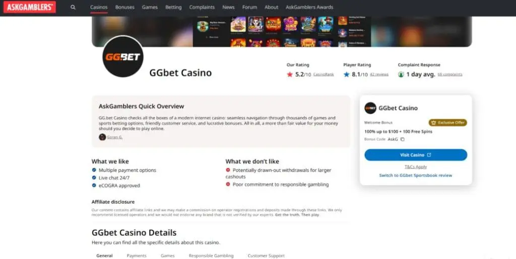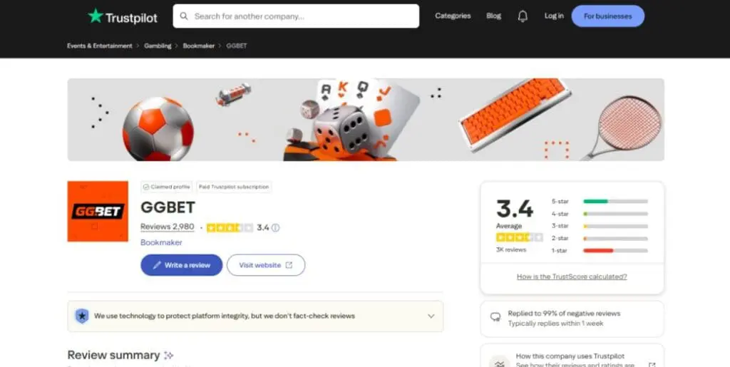 Right, that’s what GG.bet offers in terms of gambling products, but what reputation does this casino have? Well, in a world full of affiliate marketing slop and fake reviews, it’s extremely challenging to get an accurate picture (hence why we launched CoinBets). But out of curiosity, if nothing else, here are some ratings: