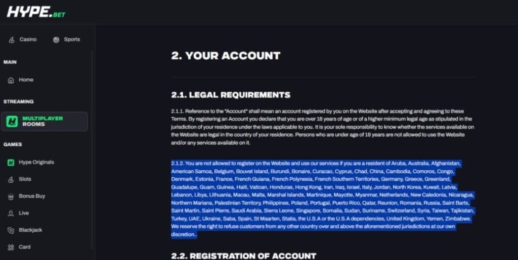 Important: To comply with its Curaçao gaming license, Hype.bet casino prohibits players from many jurisdictions. These include, but are not limited to, the United States and the United Kingdom. Keep in mind that although a VPN will enable you to bypass geoblocking, it won’t help when you need to verify your identity before you can make a withdrawal.