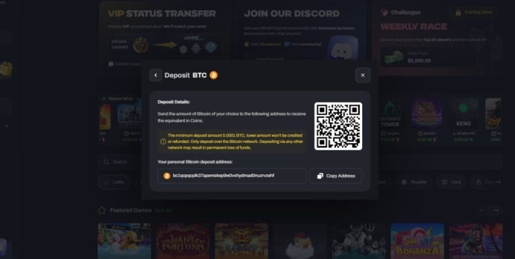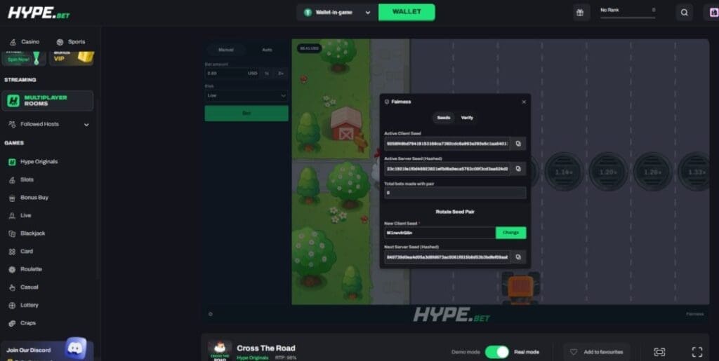 In terms of provably fair games, there are 15 Hype Originals, consisting of garden variety titles like Plinko, Dice, HiLo, Limbo, and Wheel. Plus a selection of provably fair games are available from specialist third-party providers like Turbo Games, Spribe, InOut, and BGaming. If you’d like to learn more about provably fair gaming, check out the CoinBets Introduction to Provably Fair Gaming.