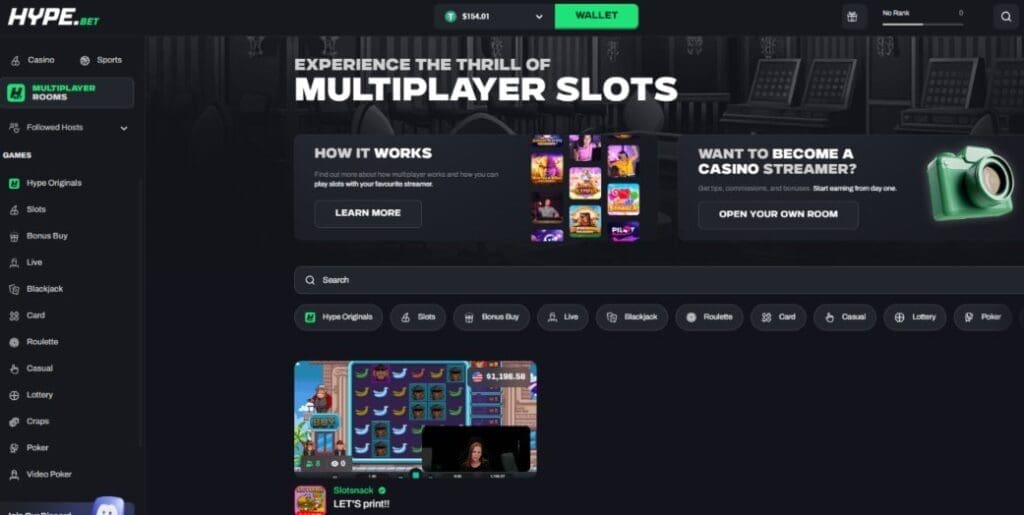 Hype.bet also offers a Multiplayer Casino. This allows influencers to create virtual rooms where people can play together. The influence manages the game, but everyone contributes to a shared bankroll, and loses or wins an amount proportionate to their contribution.