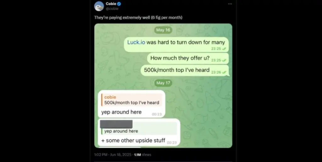 He cites information provided by several high profile members of the crypto community including popular crypto trader Cobie (Jordan Fish), and also points to a big sell-off of Rollbit’s RLB token immediately prior to Luck.io launching with a huge marketing budget. And when I say a “huge marketing budget”, the word in the crypto community is that Luck.io has been paying popular casino streamers up to $500k per month to push the new platform.