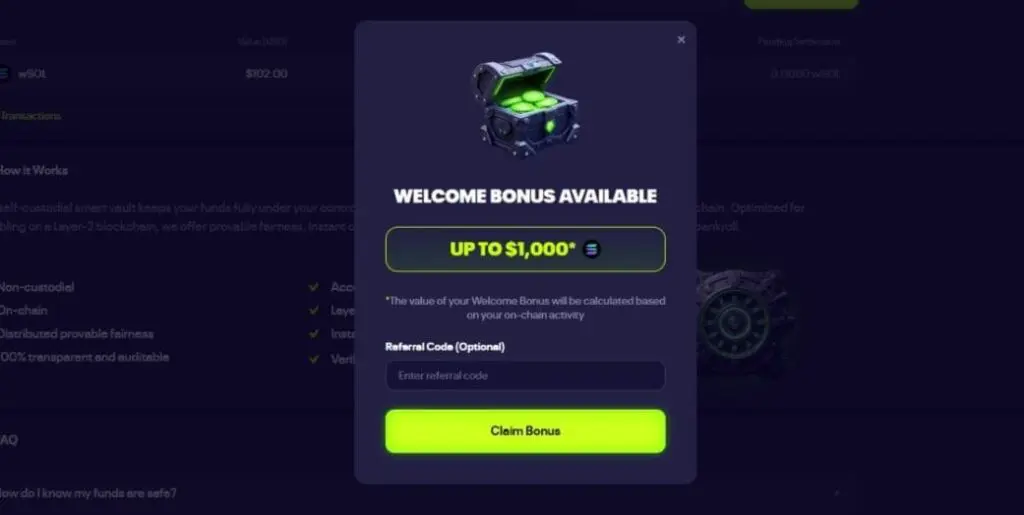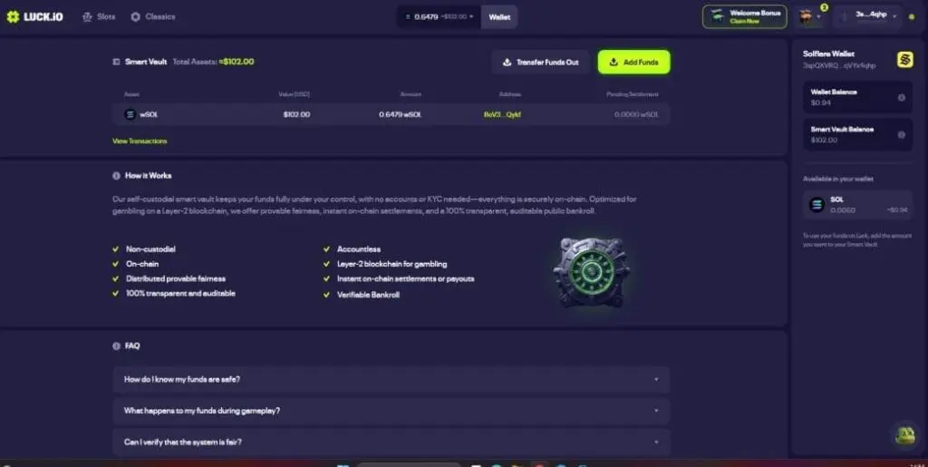 Luck.io provides player support via live chat and email (support@luck.io). Additionally, there’s a small FAQ section and Help Center with articles covering things like connecting wallets and unwrapping from wSOL to SOL.