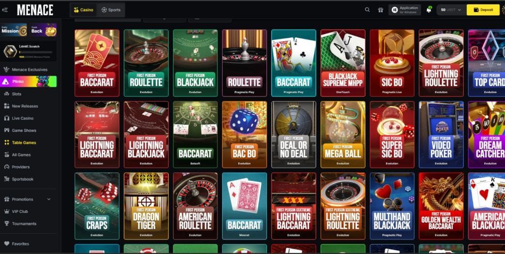 Surprisingly, Menace has seen fit to give RNG-based table games and video poker their own category. And with over 200 games to choose from, the selection is very good compared to most crypto casinos.