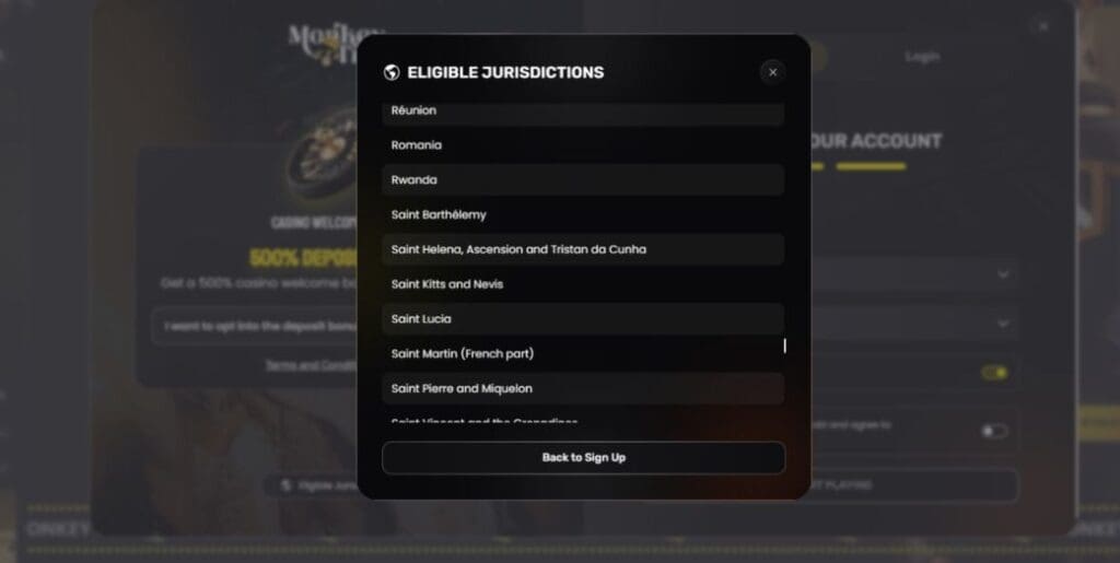 However, unlike many competitors, it does provide a handy list of eligible jurisdictions on sign-up. Remember, if your country isn’t available, don’t be tempted to use a VPN to get around it – you’ll just hit a brick wall if you need to complete KYC verification checks at withdrawal.