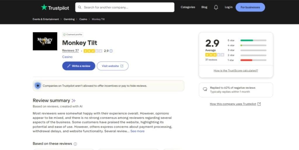 So, what do players actually think about Monkey Tilt? Well, the best way to gauge the latest vibe is by reading the user reviews at CoinBets, of course. But, out of interest, here are some ratings from other popular reviews platforms: