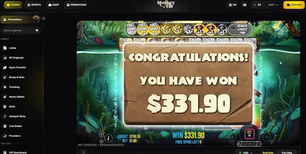 I did test the Monkey Tilt in-house Dice game, and it seemed pretty standard. Nothing special about the gameplay – it’s simple but playable. The provably fair system is easy to use too. The seeds were readily available and changeable, and the verification tool worked without issue.