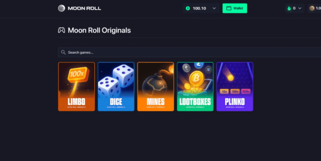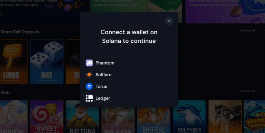 Online since 2022, Moon Roll casino is a Curaçao-based, Anjouan-licensed, Solana-centric hybrid platform. It offers a couple of thousand slots, a small live casino, and a tiny selection of original, supposedly provably fair games. It also claims to have a sportsbook – though that wasn’t working at the time of writing this review.