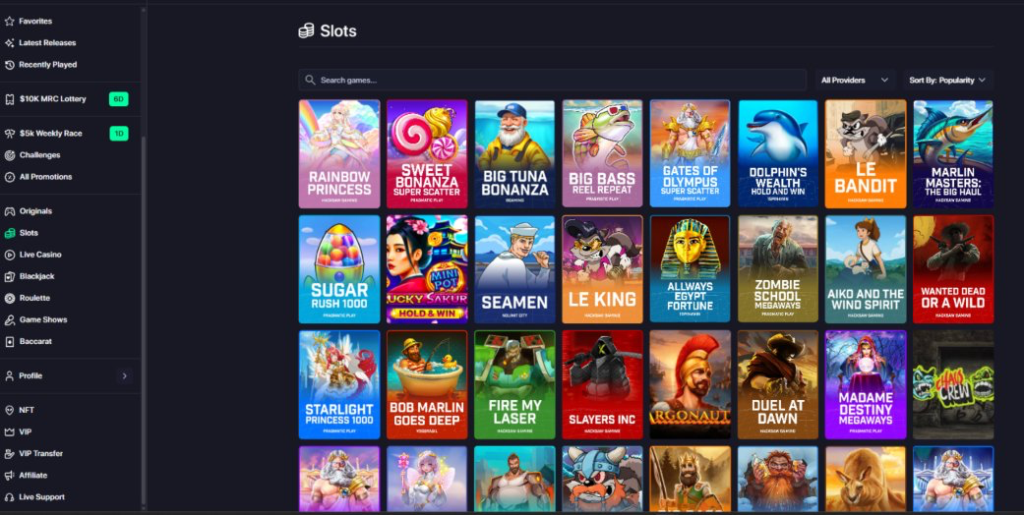 At first, Moon Roll looks like a thousand other crypto casinos – so, it’s probably using an off-the-shelf white label solution. However, as already mentioned, important information is missing, there’s a distinct lack of useful filters, and the categories are a mess. Basically, it feels like the “team” behind this casino threw it together in 5 minutes and haven’t even bothered to check the basics.