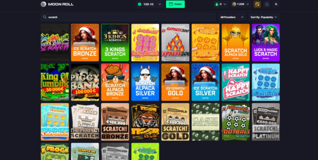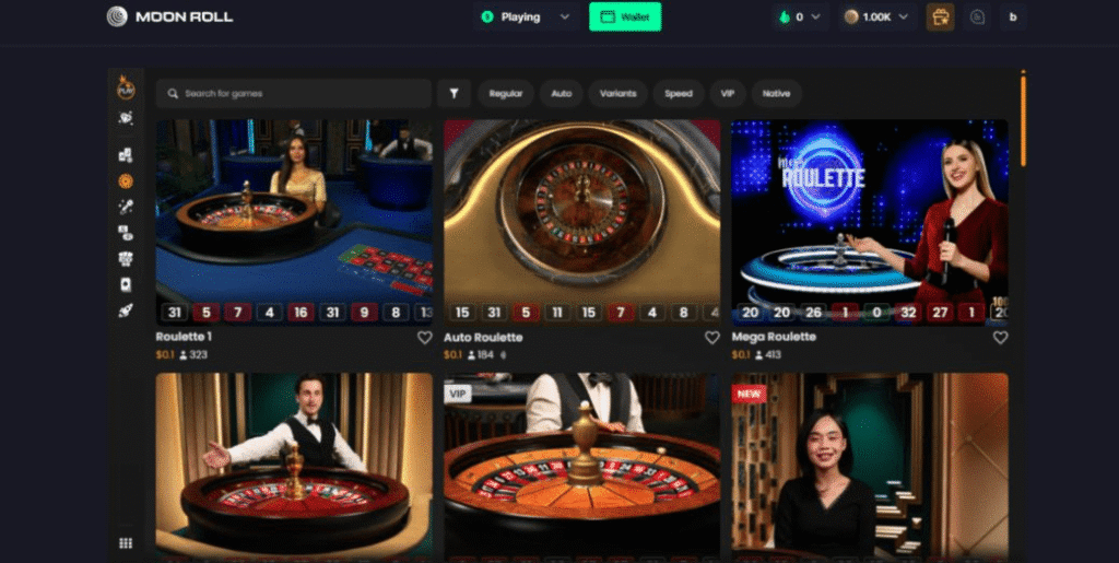 When writing this review, Moon Roll casino carried around 30 game providers, and although no total number of games was provided, the selection seemed relatively limited – probably around the 2,000 mark. The lobby itself looks neat but is actually poorly organized with only the bare minimum categories and filters, making browsing a frustrating experience.