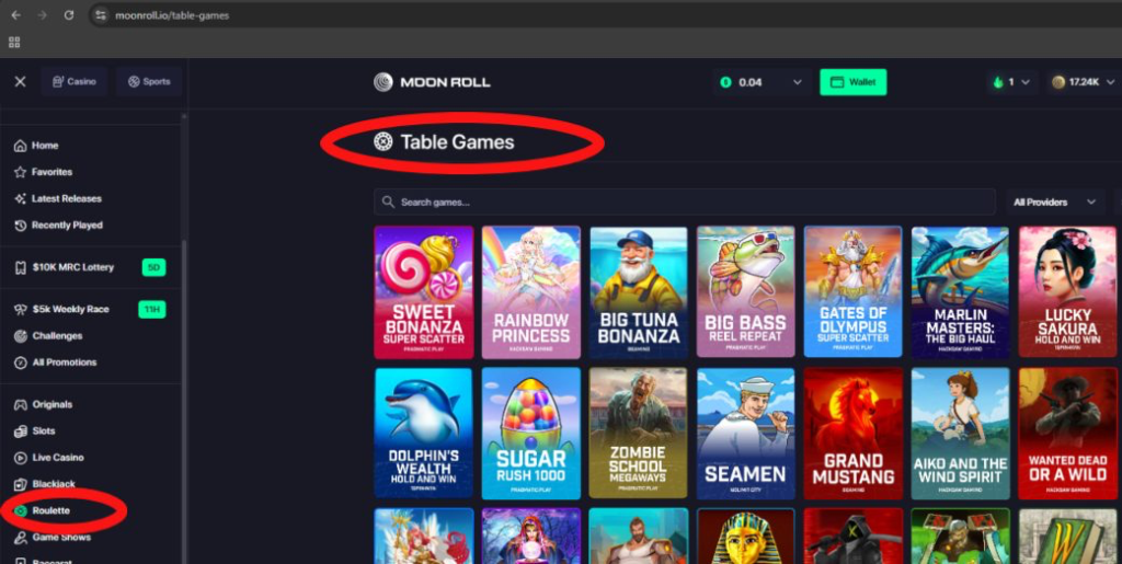 Again, the organization at Moon Roll is a mess. There’s no “Table Games” section in the navigation menu, but if you click “Roulette” you’ll open a page titled “Table Games”… that contains slots.
