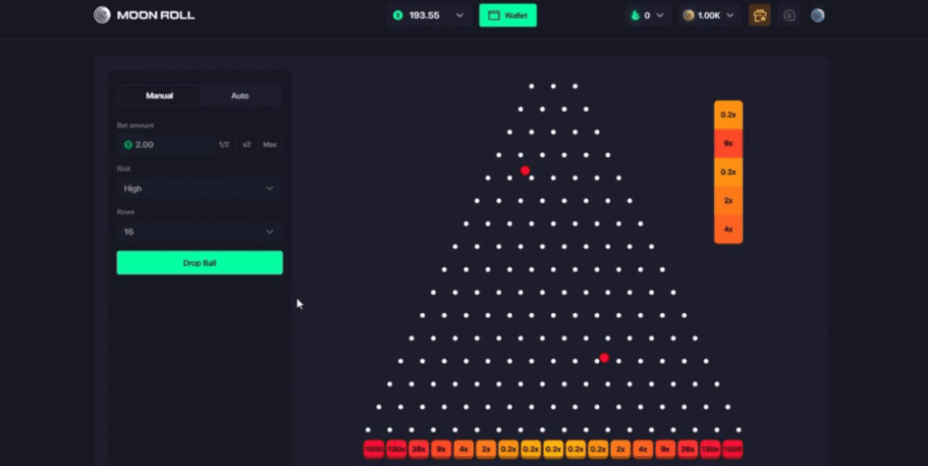 Right, time to put one of the Moon Roll Originals through its paces. And, with just 5 options to choose from, it didn’t take long to settle on Plinko. Yep, you can always rely on Plinko.