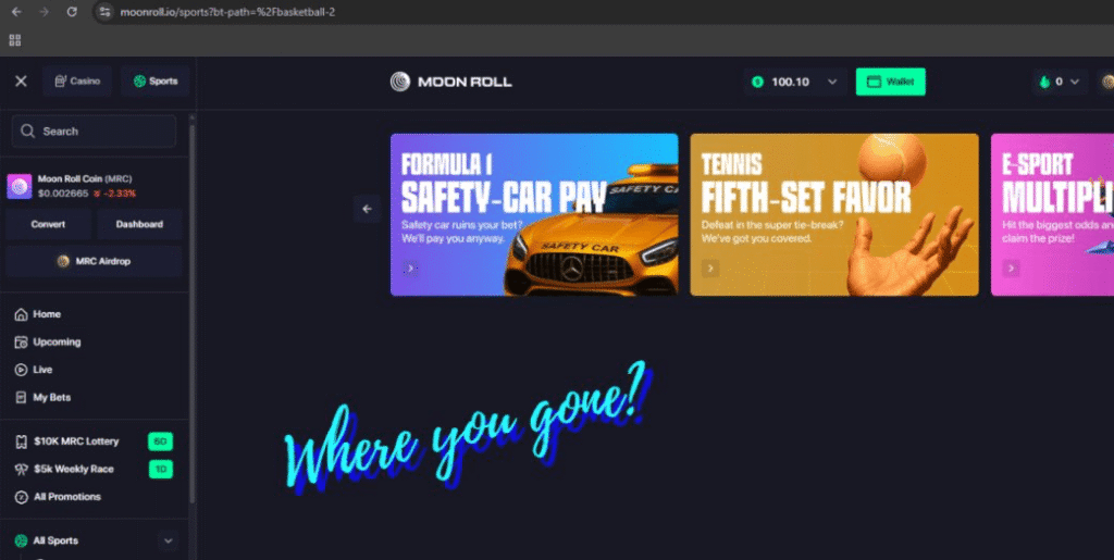 Although Moon Roll claims to offer sports betting and esports betting, at the time of reviewing, the sportsbook was unavailable. The promo offers were visible, but everything else? Gone. Just a black screen.