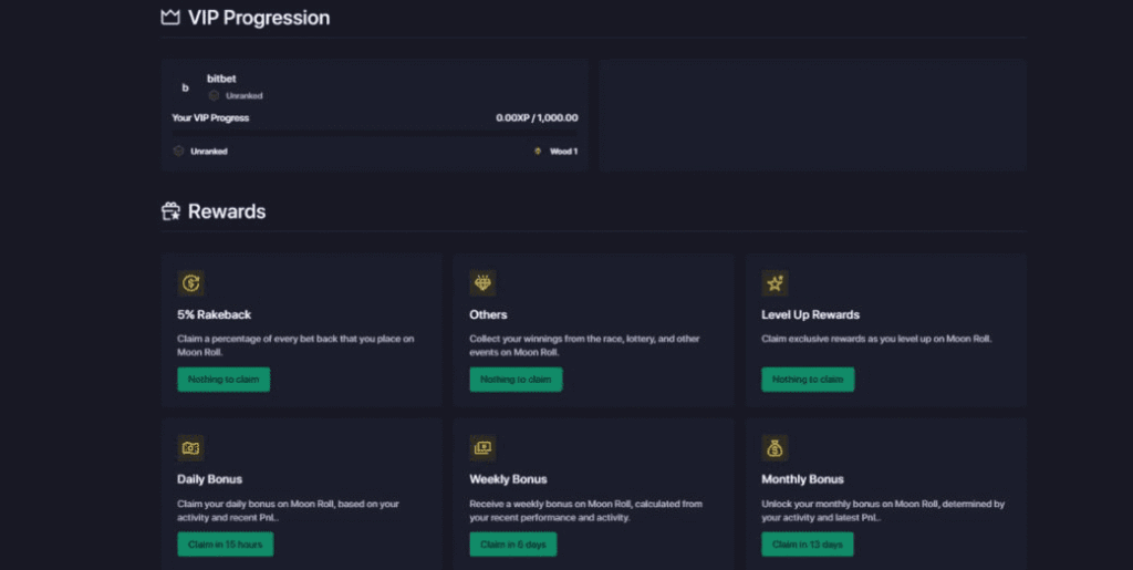 One thing worth noting, Moon Roll casino offers a VIP transfer option, claiming to match your rank and give you “even better rewards than before.”