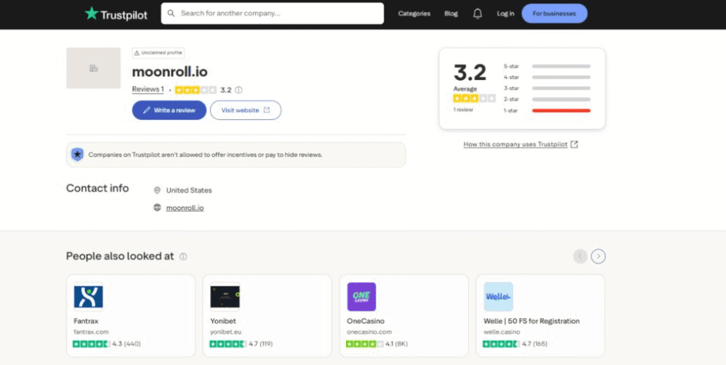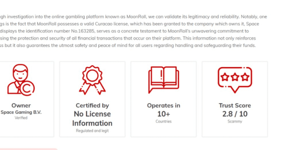 Unusually for a crypto casino that’s been operating for years, reviews of Moonrool.io are thin on the ground. And, as you can see, based on what is available, it’s not looking good.
