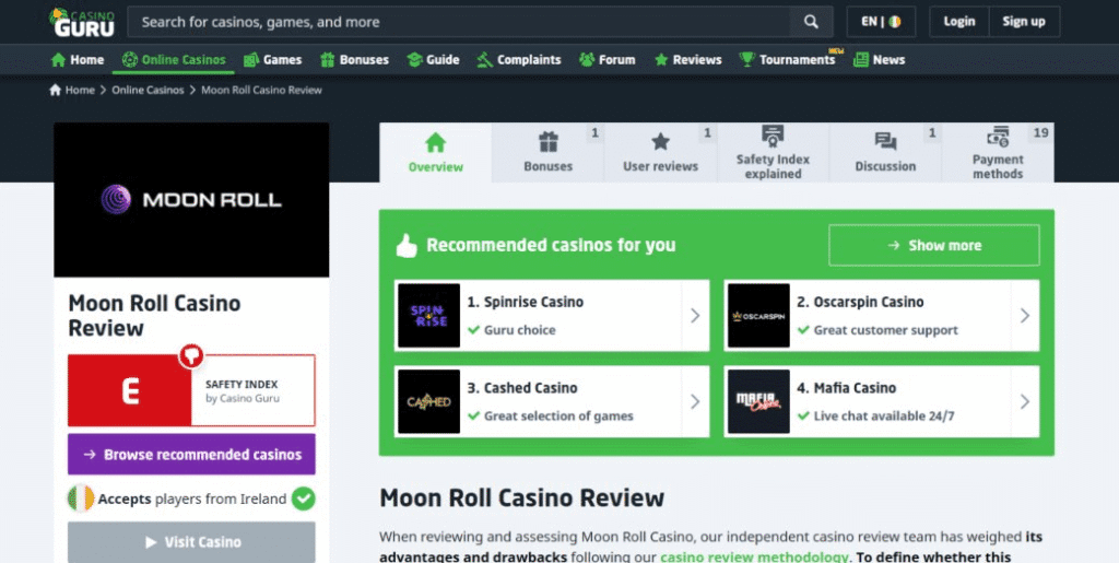 Right, so that’s what Moon Roll casino offers in terms of product, but what are people saying about it? Well, as always, it’s hard to tell – most of the content out there is published by highly biased affiliates. But, out of curiosity, here are the ratings from some popular casino review sites: