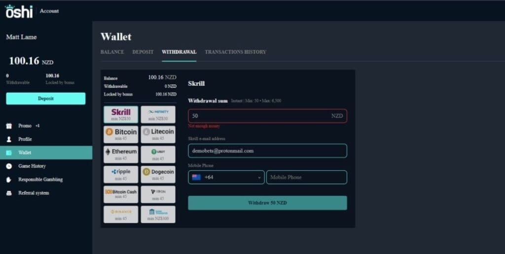 There’s no dedicated Oshi casino mobile app, but the website has been optimized to run smoothly on mobile browsers, so you can still play on your smartphone.