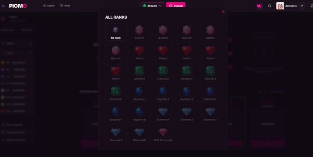While there is a multi-tier loyalty program at Pigmo, guess what? Yep, it’s an unholy mess. Beyond the names for the tiers (Quarts, Ruby, Sapphire, etc), there’s quite literally no information provided.