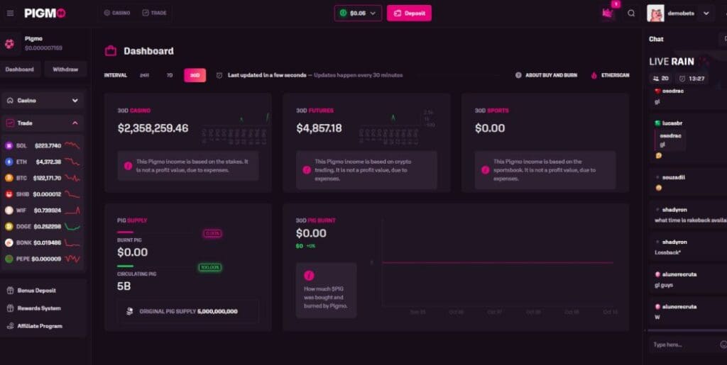 You might assume Pigmo.com casino is some scrappy new startup, given its small games catalog and sparse features. But nope, this pig’s been in the crypto casino pen since 2023, which practically makes it a grizzled veteran in degen years. There’s no sportsbook or esports, but you do get a questionable welcome bonus and a side hustle in crypto futures trading.