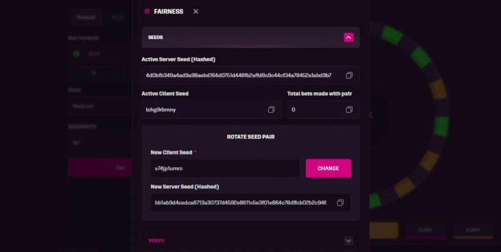 The choice of provably fair games at Pigmo.com is currently limited to ten in-house originals. It’s the standard fare; Dice, Keno, Plinko, Limbo, Mines, Roulette, HiLo, Coin, Wheel, and Blackjack. To be honest, there doesn’t seem to be anything standout or special about them, but finding and rotating seeds is easy enough, and the verification system is tidy.