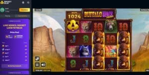 Another top ranked slot at Rocket Play was Buffalo Space Grandways – an ‘exclusive’ from Gamebeat. It appears to be a reskinned version of Buffalo Dale Grand Ways, which was released back in January 2023. As the name suggests, it’s themed around animals from the wild western frontier of America – buffalos, bears, wolves, mountain lions and such.