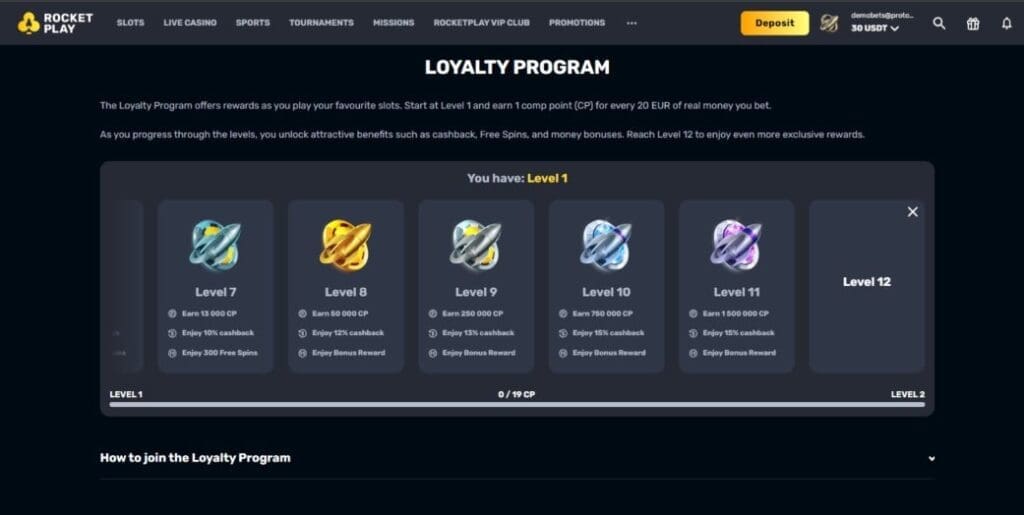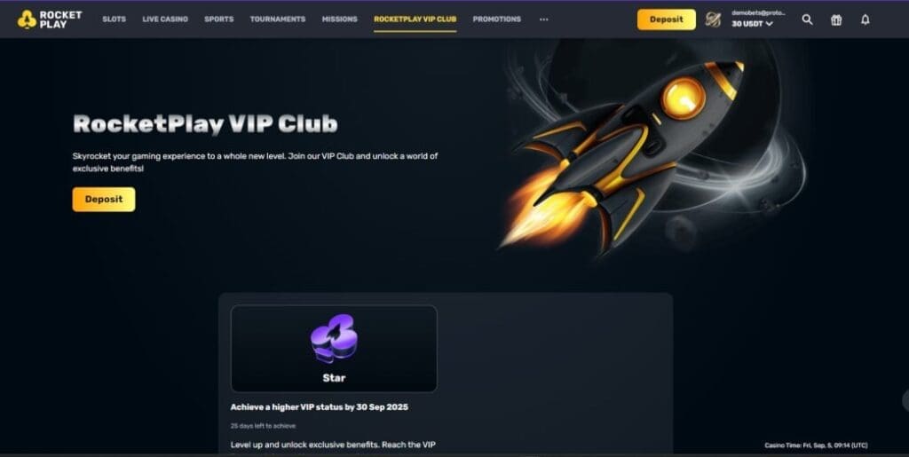 Just to make things complicated, there’s both a standard Rocket Play loyalty program, and a specific VIP club.