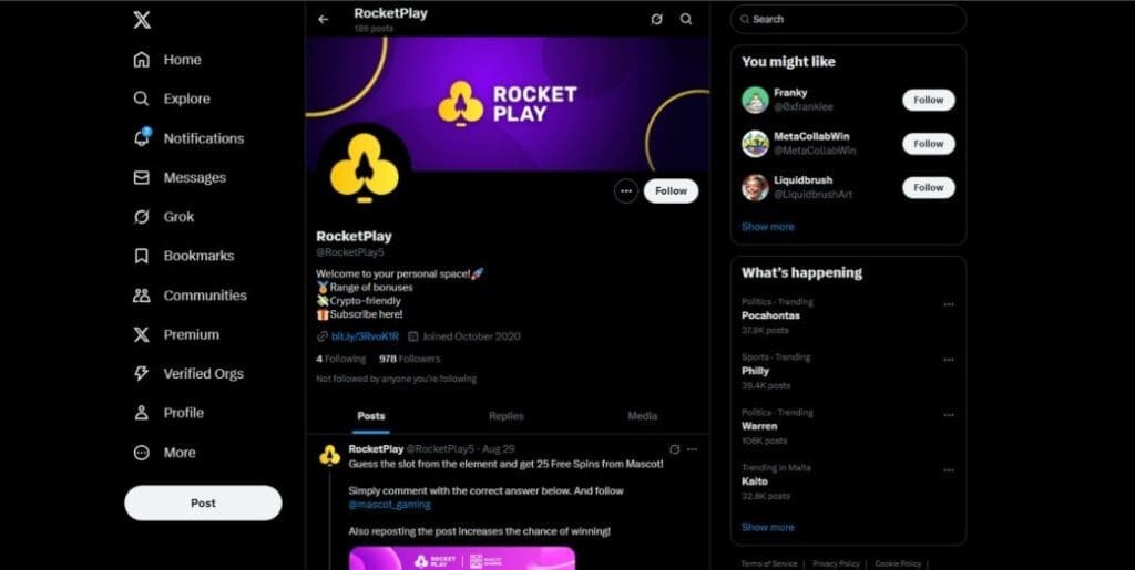 You can also follow and connect with RocketPlay via social media including Instagram, Facebook, X (Twitter), and WhatsApp.