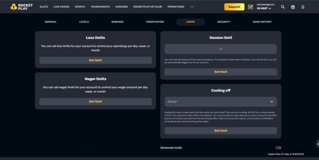Most importantly, once you’re logged in, all the terms and conditions are readily accessible and clearly written. Useful responsible gambling tools are also available in your account under the “Limits” section. These include the ability to set deposit limits, loss limits, wager limits, a cooling-off limit, and of course, self-exclusion.