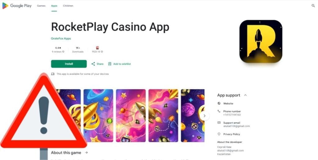 Note: There is a “RocketPlay Casino App” in the Google Play store. But, despite using RocketPlay branding, its developer is listed as being in Kazakhstan, and the support email is a gmail address. Probably best to avoid that one.