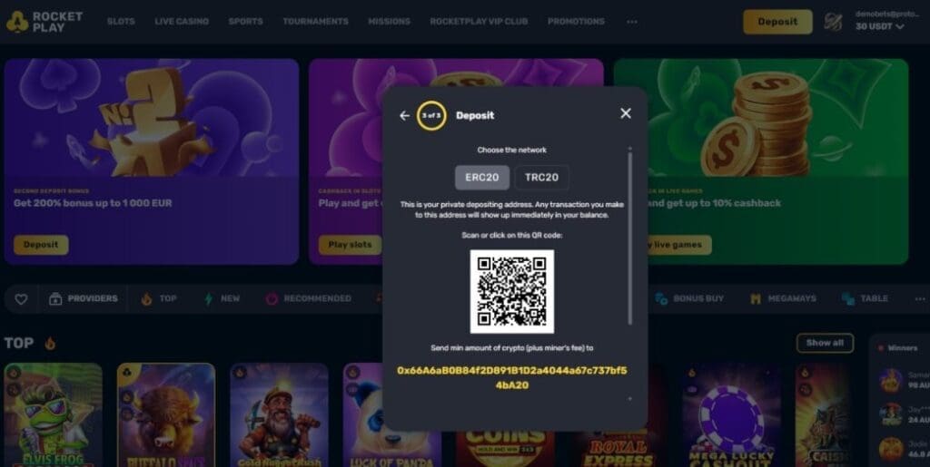 Unlike the best crypto casinos, RocketPlay.com doesn’t give you the option to purchase crypto via third-parties like MoonPay or Changelly.