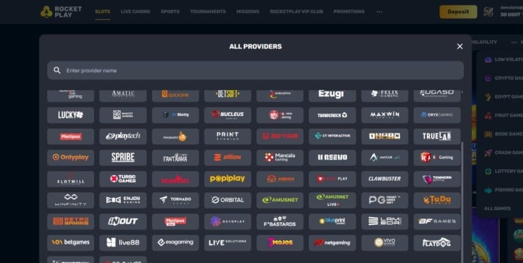 In common with many Dama casinos, there are no in-house provably fair originals here at RocketPlay casino. Even so, there are plenty from third party providers. You’ll find many of them in the Crash Games and Crypto Games categories.