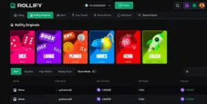 Unsurprisingly, there’s no instant win or crash games category at Rollify casino. In fact, except for a handful of Rollbit originals (which I’ll cover in a moment), there isn’t much on offer. I did find a couple of plinko games from Print Studios and BGaming, but that’s about it for casual games.