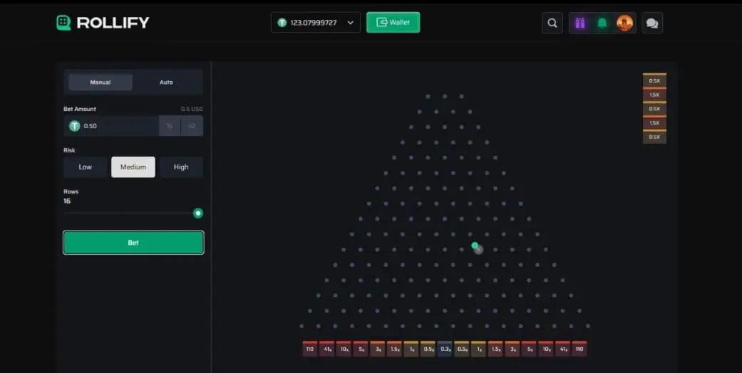 For today’s CoinBets Challenge I decided to do something a little different with the Rollify Original Plinko. I’ve done plenty of low risk vs high risk type challenges, but here I decided to do 8 rows vs 16 rows, both on medium risk setting.
