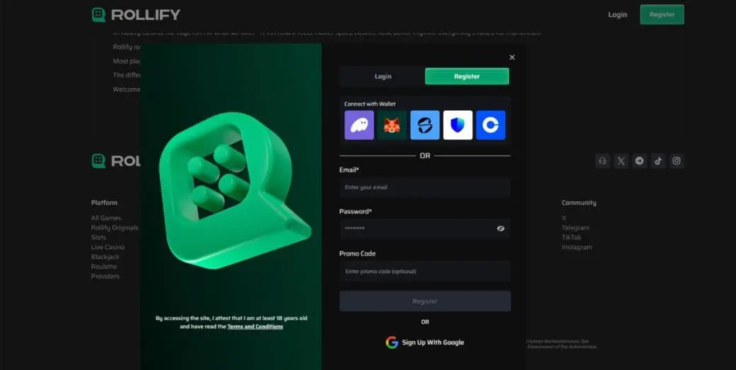 At least registering at Rollify casino is quick and easy with several options available: