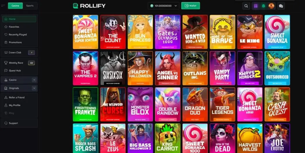 Launched in 2025, Rollify is one of the newest faces in the crypto gambling crowd – and it’s clearly trying hard to impress. With over 5,000 slots and live dealer games already available (and sports betting “coming soon”), Rollify is pushing big numbers fast. It’s also rolling out the red carpet for high rollers with its Crown Club VIP program and VIP transfer deals aimed at poaching players from rival sites.