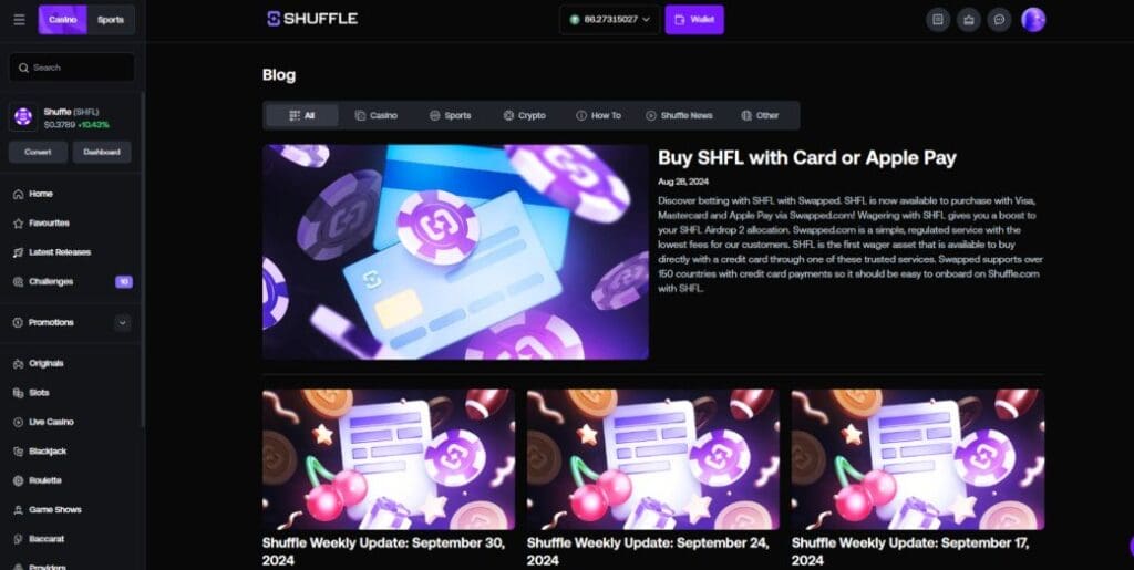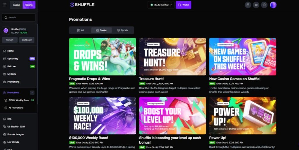 Shuffle is relatively new to the crypto casino scene, having only launched in 2023. Despite this, it’s already making its mark and giving the more established crypto casinos a run for their money.