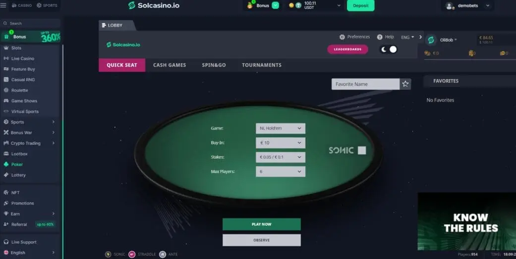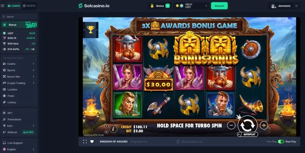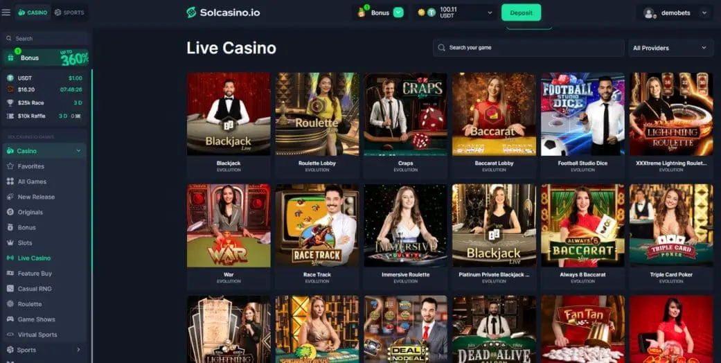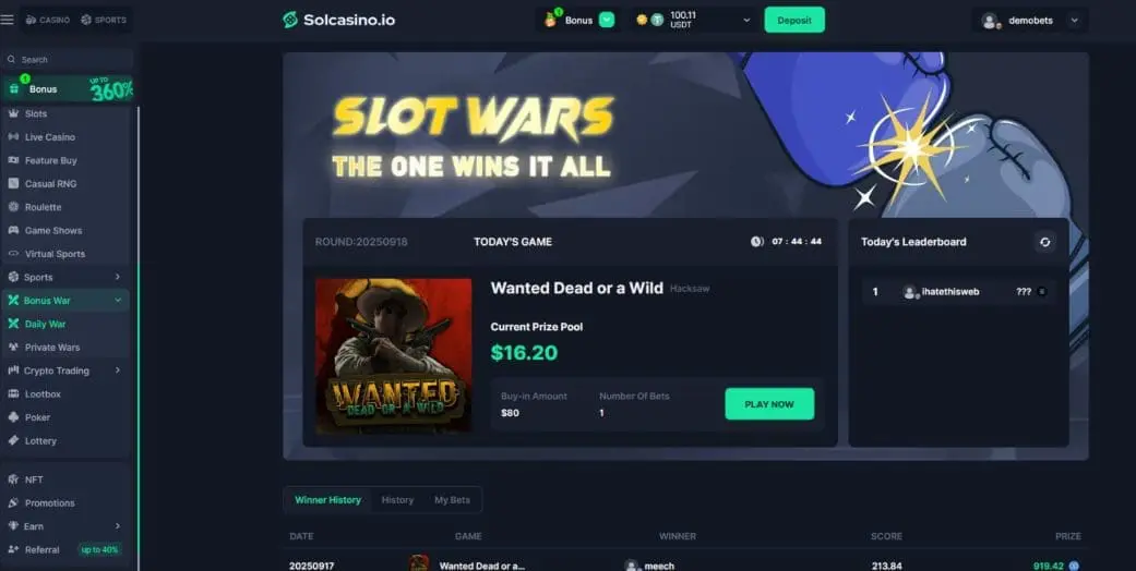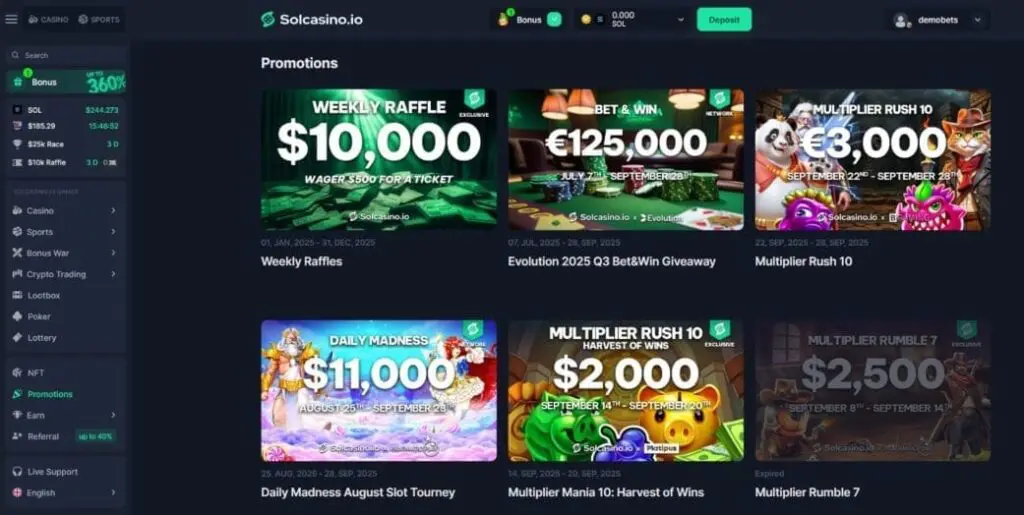Solcasino.io was launched in 2021 and claims to be the first casino platform built on the Solana blockchain. And by 2025, it billed itself as the “best web3.0 casino on Solana” — offering not just slots, instant wins, table, and live dealer games, but also PvP poker, lootboxes, crypto trading, virtual sports, sports and esports betting, and even staking opportunities.