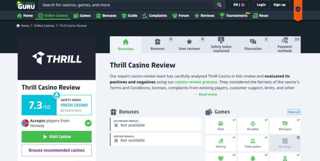 So, when assessing the reputation of Thrill casino, we need to keep in mind that it’s a very new entrant to the online gambling market. Hence, there aren’t many player reviews yet. And, of course, remember to take all affiliate content with a pinch of salt, and be aware of potentially fake reviews on platforms like Trustpilot.