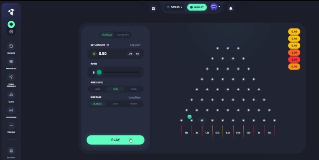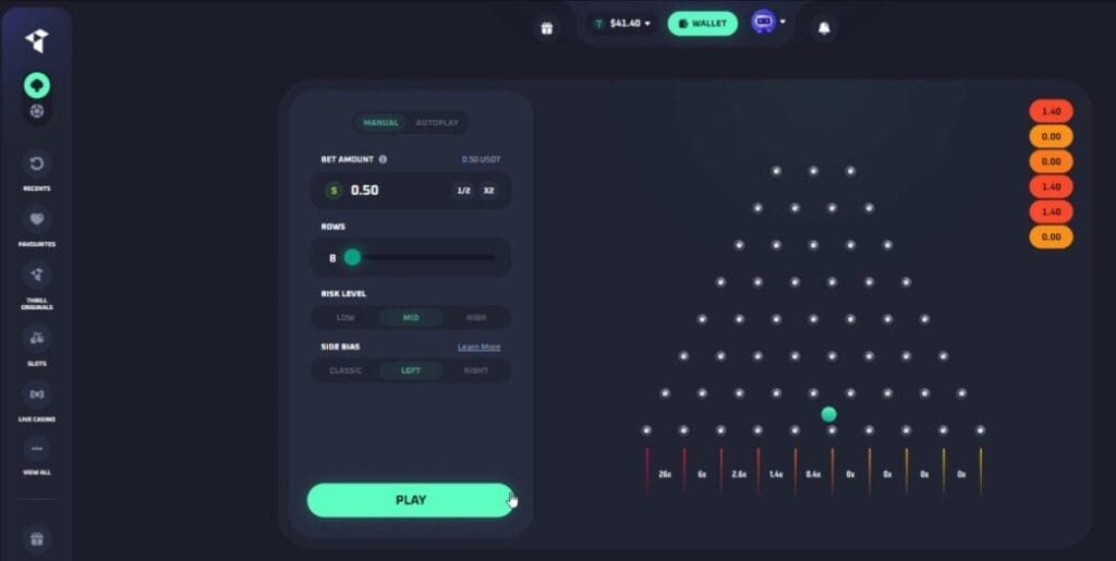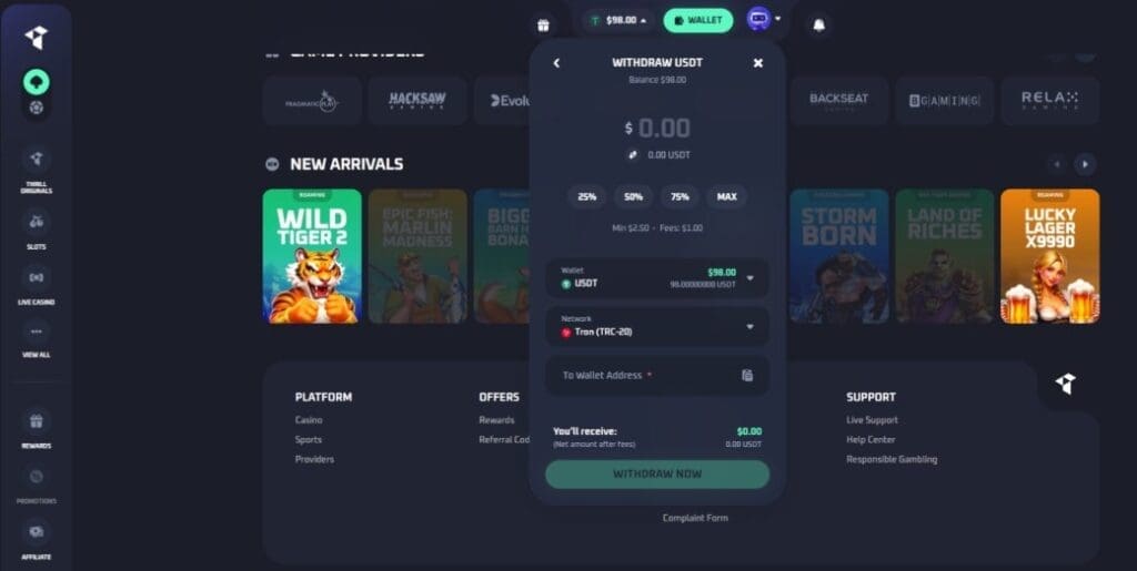 The first thing I noticed was how clean and uncluttered it is. With so many bloated and chaotic crypto gambling platforms out there (yes, 1xBET and BetFury, I’m looking at you guys), it’s refreshing to see. However, it’s evident that Thrill.com isn’t finished – and it makes me wonder if they should have held off launching until everything was ready.