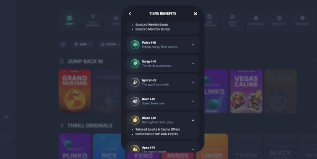 There’s no Thrill.com app available for Android or iOS devices – but the website is optimized for mobile browsers, so you can still play on your smartphone.