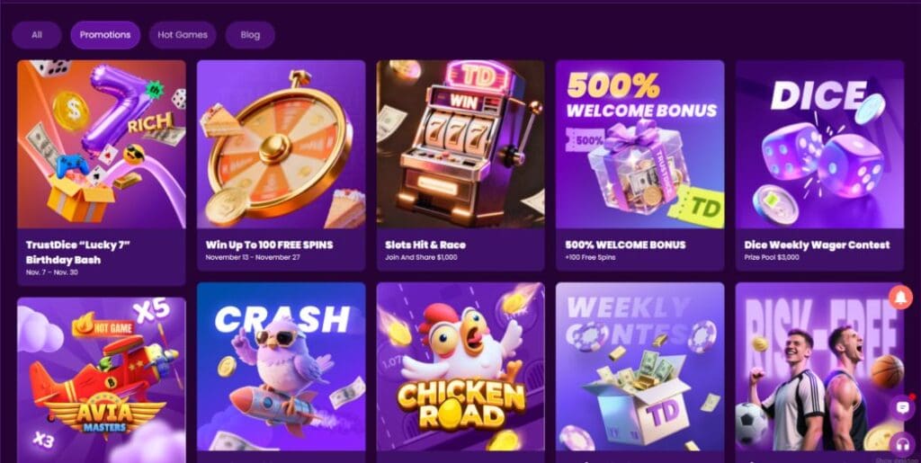 At the time of writing this Trust Dice casino review, in addition to the welcome offer, the following promos were running for existing players: