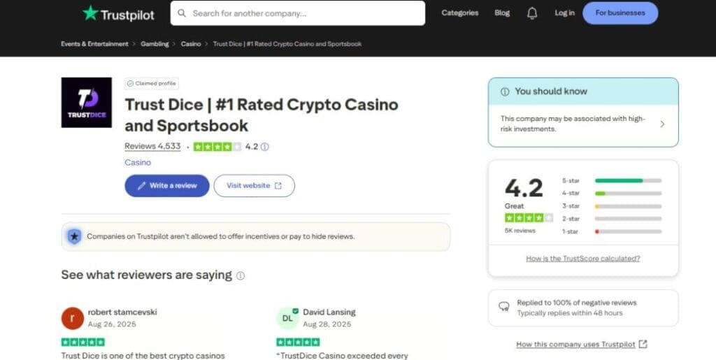 As always, you should keep in mind that many online casino reviews are created by affiliate marketers, and hence can’t be considered honest or objective. However, in the case of Trust Dice, it does appear to have a fairly solid reputation – certainly better than much of the competition.