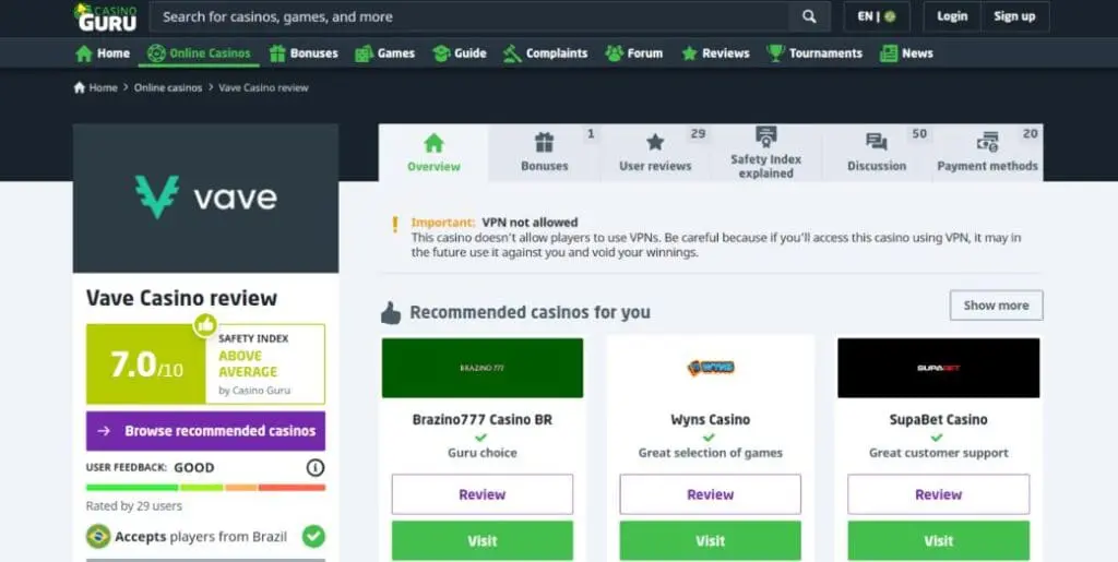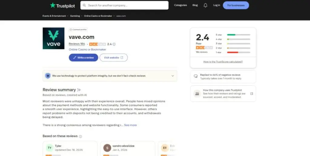 So, that’s what Vave offers in terms of products and promos, but what are people saying about it? Well, as always, it’s incredibly difficult to get a clear picture because of all the fake reviews, affiliate spam, and reputation laundering. But, if you’re curious, here’s how Vave was ranking on some popular casino review platforms: