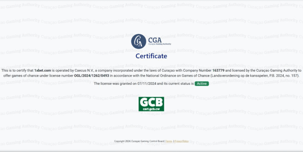 1XBET.com is operated by Caecus N.V., and is based and licensed in Curaçao (license number OGL/2024/1262/0489).