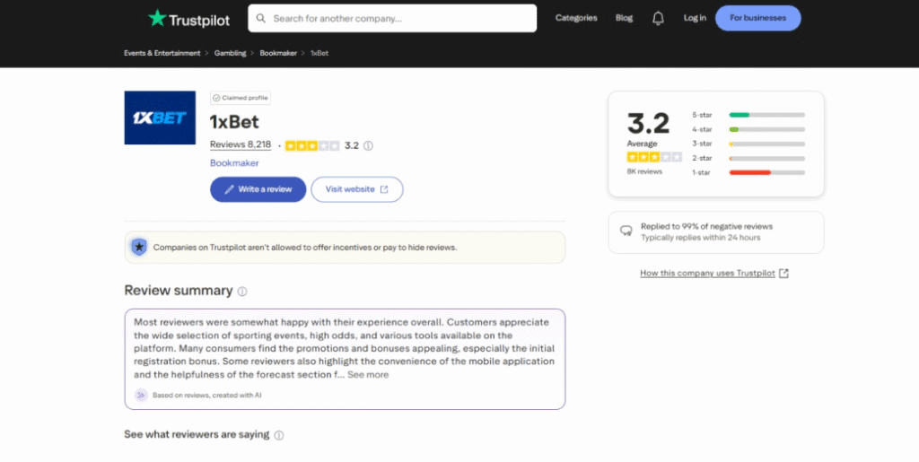Right, so that’s what 1XBET crypto casino offers, but what are players saying about it? Well, as always, it’s important to keep in mind that most reviews are published by highly biased affiliate marketers (unlike CoinBets – we’re not paid by any casinos), and platforms like Trustpilot are swamped by fake reviews