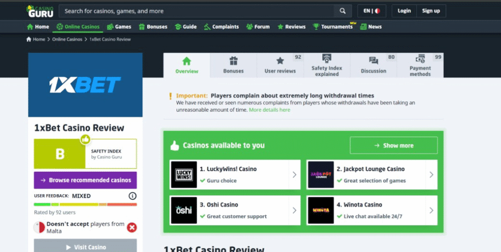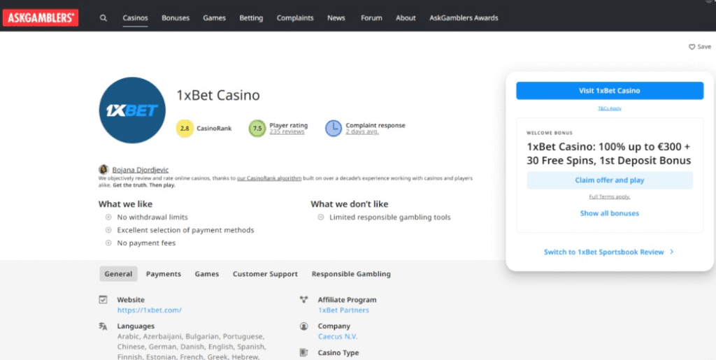 If you consider that affiliate sites like Casino Guru and AskGamblers are normally wildly generous with their ratings, things don’t look too good for 1XBET.