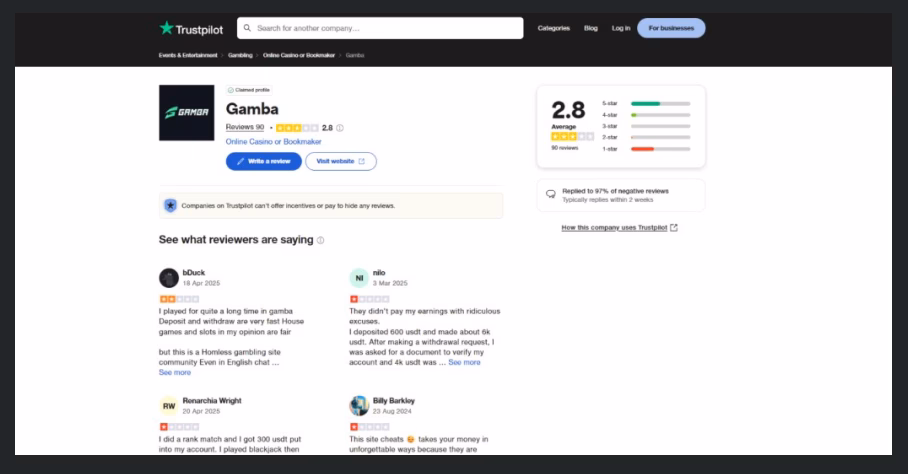 As always, you should remember that Trustpilot ratings tend to be heavily manipulated via fake reviews, and sites like Casino Critique are run by biased iGaming affiliates. To be honest, being so young, I think the jury is still out on Gamba.